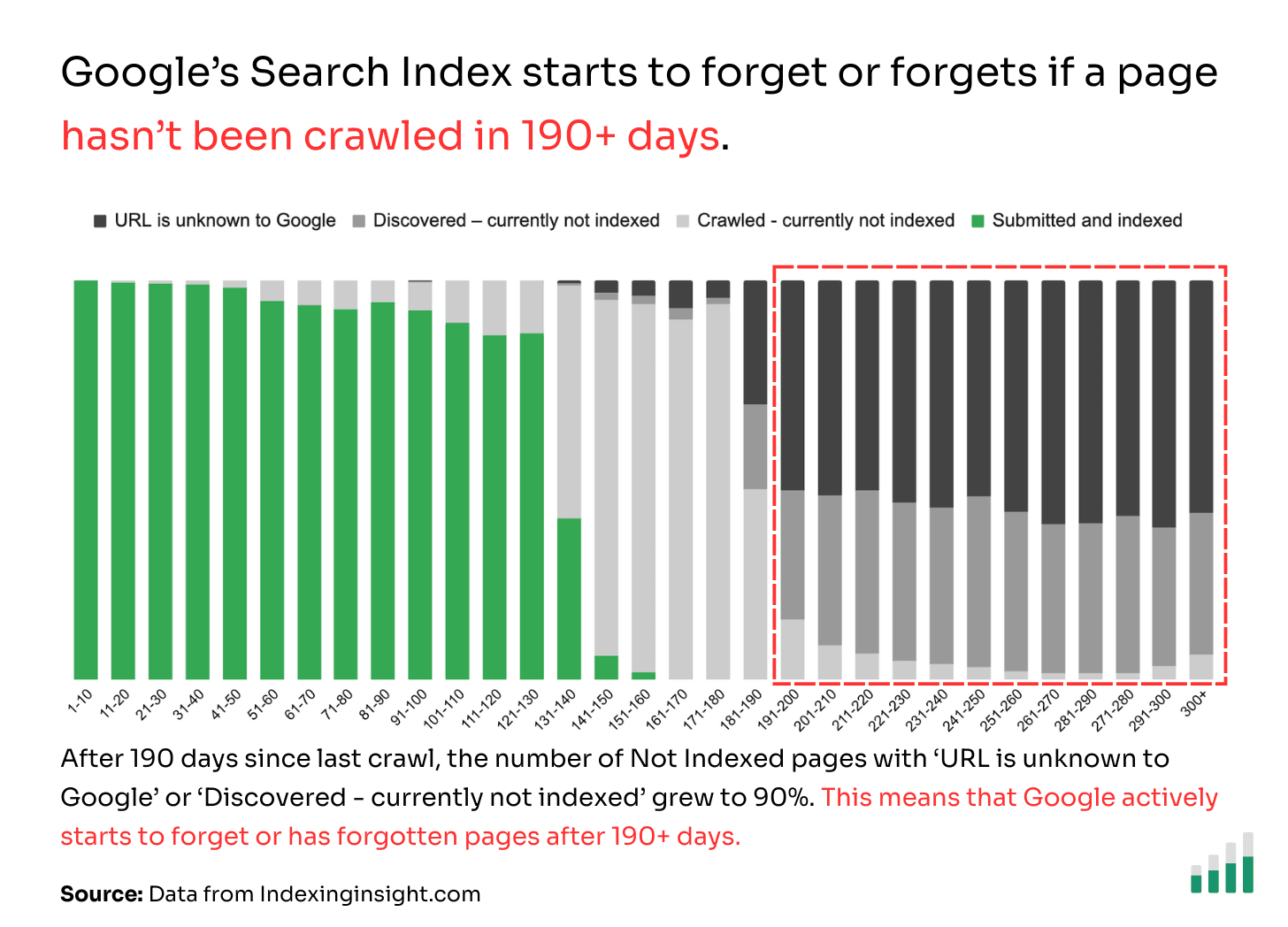 Based on this research, the Indexing Insight team has created reports that help customers quickly identify pages not crawled in 190+ days.