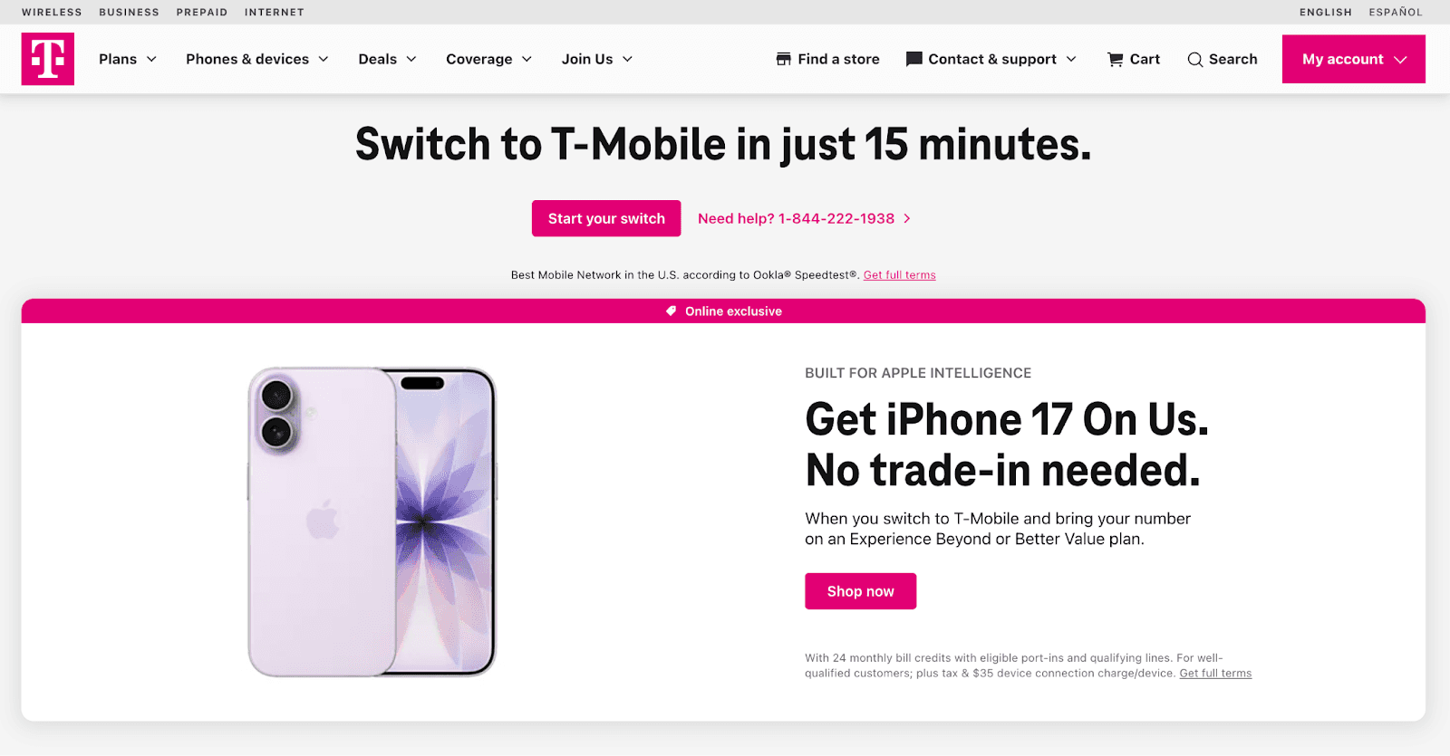 One critical area where Lastmile Retail was helping the T-Mobile team was the shop pages on the Spanish (ES) language subdomain of the website.