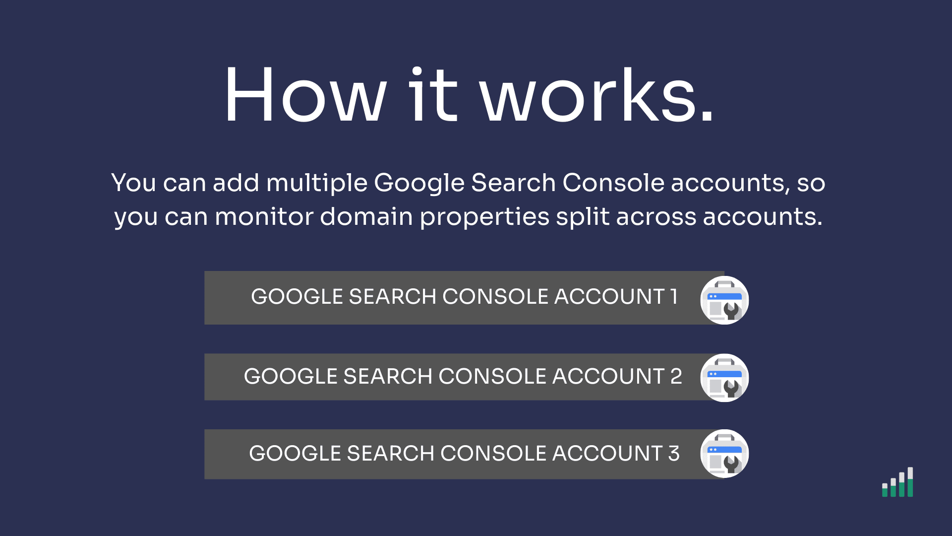 Once you've added another Google Search Console account, you will be able to start monitoring the domain properties within that new account.